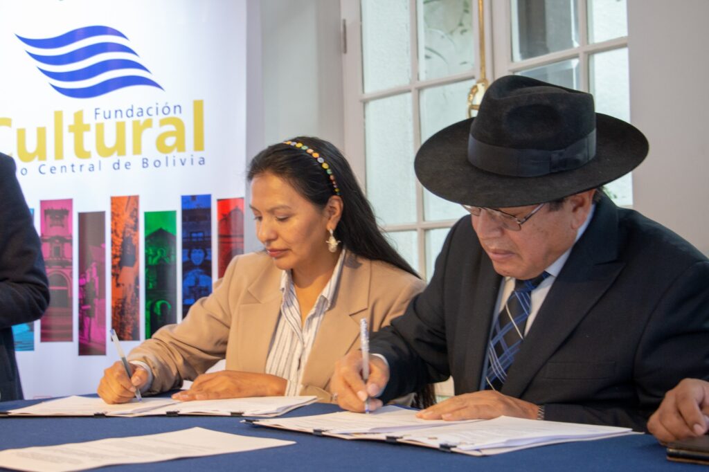 La Fundación Cultural del Banco Central de Bolivia (FCBCB) y la Editorial del Estado Plurinacional de Bolivia (EEPB), la jornada de hoy, en ambientes del Museo Fernando Montes (MFM) en la zona de Sopocachi, llevaron a cabo la suscripción del convenio “Aunando esfuerzos para el Vivir Bien”, con el objetivo de establecer puntos y actividades en común para el Vivir Bien en la producción editorial, impresión y otras actividades relacionadas, misma que permitirán acceder a la población a libros a bajo costo.