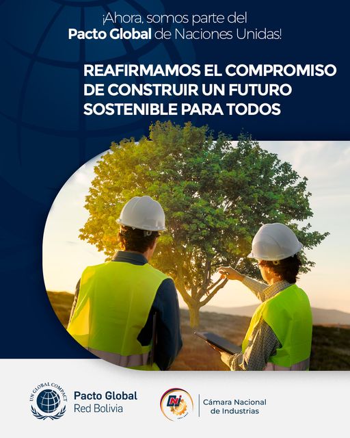 Luego de intensas gestiones realizadas por la Cámara Nacional de Industrias (CNI), se logró la adhesión de la entidad gremial industrial al Pacto Global de Naciones Unidas. La adhesión al Pacto Global Bolivia representa un desafío importante hacia el fortalecimiento de la sostenibilidad corporativa de la CNI. El desafío implica responsabilidades como establecer indicadores para reportar avances hacia el logro de la sostenibilidad. Esta señal de transparencia permitirá a la Cámara Nacional de Industrias la construcción de credibilidad y valor de marca mostrando el compromiso con los Diez Principios y los Objetivos de Desarrollo Sostenible (ODS). “La adhesión al Pacto Global ratifica nuestro compromiso con la construcción de un mundo mejor a partir de una gestión enfocada en la innovación, la transformación y la sostenibilidad”, aseguró el Gerente General de la CNI, José Luis Zavala. La CNI contará con beneficios como la evaluación comparativa del progreso con el de entidades pares con acceso a una de las fuentes públicas y comparables más grandes de datos de sostenibilidad corporativa y a redes conformadas con todos los participantes del Pacto Mundial de la ONU (lo que representa acceso a casi todos los sectores y tamaños de la industria) en más de 160 países. El Pacto Global es una iniciativa creada por mandato de Naciones Unidas que trabaja por economías globales más sostenibles e incluyentes y promueve la implementación de 10 Principios Universales en áreas de Derechos Humanos, Estándares Laborales, Transparencia y Anticorrupción y Medio Ambiente, con el objetivo de que sean incluidas en las estrategias y operaciones de las empresas. El Pacto Global está dirigido a empresas, sindicatos y otras organizaciones de la sociedad civil, que asumen voluntariamente el compromiso de implantar los principios antes mencionados en sus actividades cotidianas. A esta determinación, se suma una rendición de cuentas a la sociedad, con publicidad y transparencia, de los progresos que realizan en el proceso de implantación, mediante la elaboración de Informes de Progreso. Esta iniciativa cuenta con más de 14.000 entidades firmantes en más de 160 países, convirtiéndose en la mayor iniciativa voluntaria de Responsabilidad Social Empresarial y Sostenibilidad Corporativa en el mundo