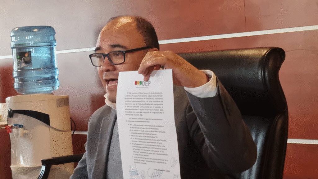 La provisión de combustible en el país para todo el proceso electoral de la segunda vuelta se encuentra garantizado tras un acuerdo firmado entre autoridades del Ministerio de Hidrocarburos, Yacimientos Petrolíferos Fiscales Bolivianos (YPFB) y el Tribunal Supremo Electoral (TSE).