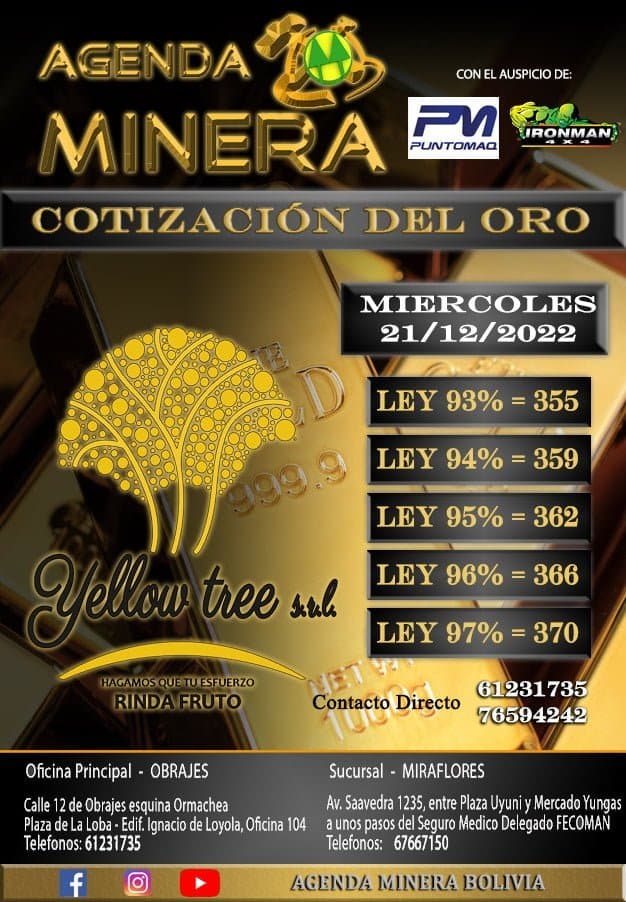 SUBE PRECIO DEL ORO COTIZACIÓN MIÉRCOLES 21/12/2022